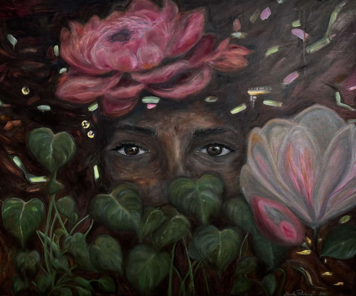 Obraz zkoumá ženský princip a rovnováhu mezi vnitřní silou a křehkostí. Vznikl jako reflexe těchto vlastností a snahy zachytit naději a pokoru ve vztahu k vlastnímu prožívání. Dílo bylo tvořeno vrstvením olejových barev a prací s kompozicí a světlem, s cílem vytvořit vizuální výraz této vnitřní dynamiky.
